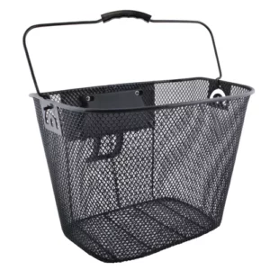 DUŻY KOSZYK METALOWY NA ROWER ŁATWY MONTAŻ – montuje się go do kierownicy przy wykorzystaniu uchwytu typu CLICK. Taki sposób montowania pozwala na bardzo szybkie wpięcie i wypięcie koszyka na rower – bez potrzeby stosowania żadnych dodatkowych narzędzi. Dodatkowo w zestawie znajdują się gumowe nakładki chroniące kierownicę, nie ma więc ryzyka zniszczenia czy porysowania kierownicy. POJEMNY – bez problemu…