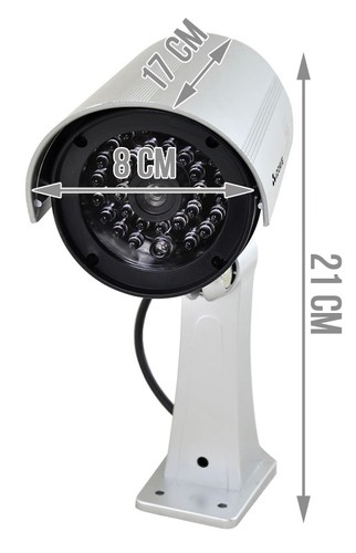 - REALISTYCZNY WYGLĄD – atrapa kamery przemysłowej do monitoringu. Dzięki zastosowaniu wszystkich elementów, które posiada prawdziwa kamera, tj. obiektywu, przewodu i uchwytu sprawia, że atrapa jest wierną kopią kamery przemysłowej. Nie wymaga drogich pozwoleń na monitoring ludzi. Urządzenie jest wyposażone we wbudowaną pulsującą, czerwoną diodę LED.