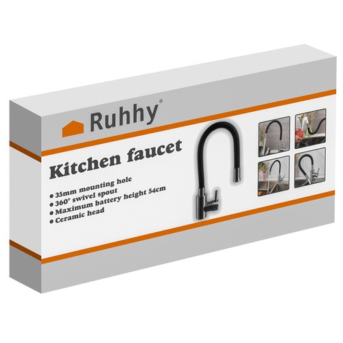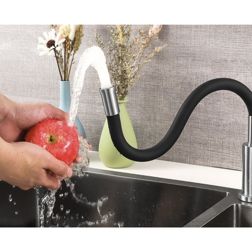 - SPECYFIKACJA – kolor: czarno/srebrny; materiał: silikon, ceramika, stal nierdzewna satynowana; obrotowa wylewka: 360°; wysokość regulowana: tak; odkręcany perlator:tak; głowica ceramiczna: tak; długość węża 55,5 cm; wymiary: 8×55,5 cm; waga: 1,175 kg; waga w opakowaniu: 1,552 kg.