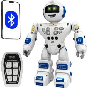 INTERAKTYWNY ROBOT ZDALNIE STEROWANY + PILOT STEROWANIE GESTAMI LUB PILOTEM – robot posiada wbudowane sensory dzięki, którym można sterować gestami. Dodatkowo w zestawie jest pilot, który także odpowiada za sterowanie. Zabawka może chodzić i tańczyć! ŁĄCZNOŚĆ PRZEZ BLUETOOTH – możesz połączyć się z robotem przez Bluetooth ze smartfonem czy tabletem, a także komputerem. Bez problemu odtworzysz muzykę, a robot…