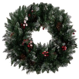 WIANEK DEKORACYJNY / STROIK ŚWIĄTECZNY OŚNIEŻONY OZDOBA CHOINKOWA WIANEK – ten świąteczny, ozdobny wianek doda Twojemu mieszkaniu niezapomnianego charakteru, świetnie sprawdzi się jako dopełnienie aranżacji lub akcesorium do stworzenia ozdoby świątecznej. UNIWERSALNY – dekoracja doskonale sprawdzi się do ustrojenia np. drzwi zewnętrznych jak i wewnętrznych, balkonowych, przyozdobienia mieszkania czy wykonywania stroików. Znajdzie zastosowanie w każdej ozdobie oraz dowolnym miejscu. STYLOWY + ZDOBIENIE – sztuczny…