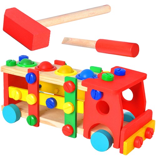 CIĘŻARÓWKA DREWNIANA ZE ZBIJAKIEM + AKCESORIA