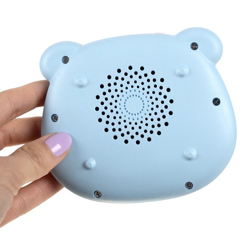 • NAUKA SŁÓWEK PRZEZ POWTARZANIE  – po włożeniu karty czytnik miś wymawia słówko z obrazka po angielsku umożliwiając dziecku jego powtórzenie. Jeżeli dziecko potrzebuje powtórzenia może nacisnąć przycisk „REPEAT”. Może również ściszyć lub pogłośnić czytnik.