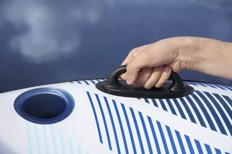 - ŁATWE W TRANSPORCIE – dookoła koła znajduje się linka bezpieczeństwa z wbudowanymi przelotkami oraz 2 uchwyty, które przydadzą się podczas transportu, ale mogą także posłużyć świetnej zabawie. Mimo swoich dużych rozmiarów, po spuszczeniu powietrza z koła, z łatwością zmieścisz je w plecaku, czy nawet torebce!