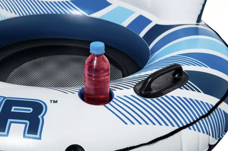 - DNO Z SIATKI I UCHWYTY NA KUBKI – dno wykonane z siatki zapewnia chłodzenie bezpośrednio z wody, co jest idealne w gorące dni. Siedzenie w kole jest bardziej komfortowe. Koło wyposażone jest również w 2 uchwyty na kubki, co umożliwia łatwe i bezpieczne trzymanie napojów. To doskonałe rozwiązanie dla osób, które chcą cieszyć się napojami bez konieczności wychodzenia z wody.