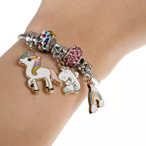 - UCIESZY SIĘ KAŻDA DZIEWCZYNKA I NASTOLATKA – „małe księżniczki” i „nastoletnie panny” uwielbiają biżuterię w dużych ilościach. Odkrywając codziennie nową zawieszkę, mała kobietka będzie z niecierpliwością czekać na kolejny dzień by uzbierać tyle zawieszek ile pomieści bransoletka.