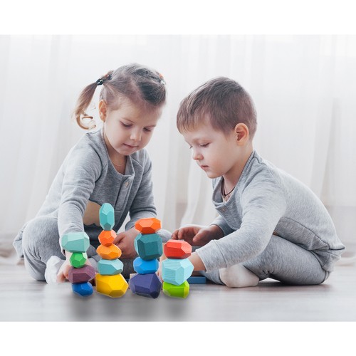 - WYTRZYMAŁE I BEZPIECZNE – nie od dziś wiadomo, że drewniane zabawki to zabawki, które potrafią w niezniszczonym stanie bawić pokolenia. Klocki drewniane kamienie są wytrzymałe – nie ma więc obawy, jak w przypadku zabawek plastikowych, że uszkodzony element przypadkowo zrani dziecko.