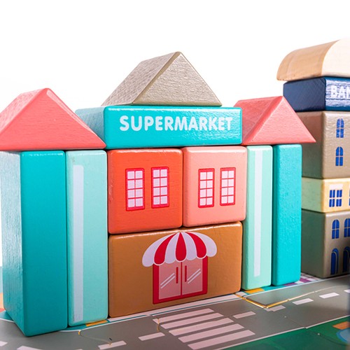 - ROZWÓJ ZDOLNOŚCI MOTORYCZNYCH I KREATYWNYCH – dzięki różnorodności kształtów oraz możliwości budowania własnych konstrukcji, dzieci rozwijają swoje zdolności manualne, ucząc się precyzji i koordynacji ręka-oko. Tworzenie własnych układów miejskich stymuluje kreatywne myślenie, zachęcając do planowania, eksperymentowania i wyrażania własnych pomysłów.