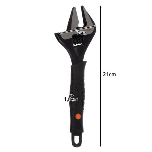 - PRECYZYJNA REGULACJA I WSZECHSTRONNOŚĆ – klucz wyposażony jest w rozstawne szczęki z pokrętłem ślimakowym, które umożliwia precyzyjną regulację rozwarcia szczęk od 0 do 35 mm. Dzięki temu można idealnie dostosować klucz do szerokiej gamy nakrętek i śrub. Czytelna, laserowo grawerowana skala pomiarowa umożliwia dokładne dopasowanie, co zwiększa precyzję pracy i sprawia, że klucz jest idealnym narzędziem do zadań wymagających elastyczności i regulacji. Mechanizm ślimakowy gwarantuje płynne i bezproblemowe dostosowywanie rozwarcia, co znacznie ułatwia pracę przy różnorodnych elementach.