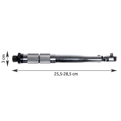 - SPECYFIKACJA – materiał: stal chromowo-molibdenowa, pozostałe: guma + etui (PP), klucz prawo / lewo; główka z grzechotką; minimalny moment obrotowy: 5 (N.m); maksymalny moment obrotowy: 25 (N.m); do zakręcania i odkręcania połączeń śrubowych: tak; uniwersalny: tak, do śrub czworokątnych, sześciokątnych, haczyków, nakrętek motocyklowych itp; dynamometryczny: tak; w zestawie: klucz i etui; zabierak kwadratowy (bolec): 5mm; szerokość: 3 cm; wymiary: (regulacja długości): 25,5- 28,5cm; waga klucza: 0,6kg; waga w opakowaniu: 0,8kg