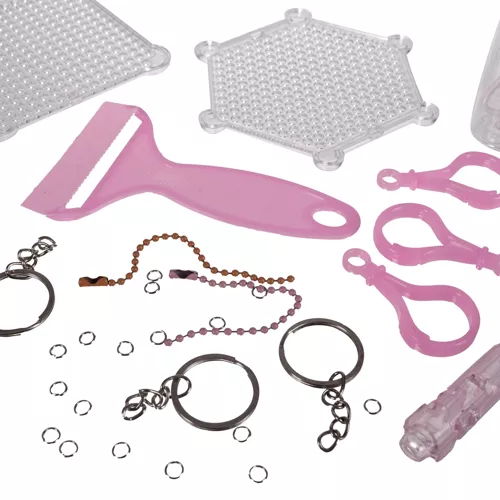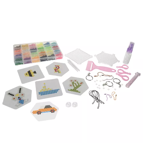 - DIY ZRÓB TO SAM – kreatywny zestaw posiada dodatkowe akcesoria jak: karabińczyki, kółka czy łączniki. Dla dzieci będzie to niesamowita zabawa w tworzenie breloczków czy zawieszek do telefonu. Zarówno dla chłopców jak i dziewczynek. Jak stworzyć figurkę? To bardzo proste! Po ułożeniu odpowiedniego wzoru, wystarczy spryskać wodą i odczekać, aż wyschnie.