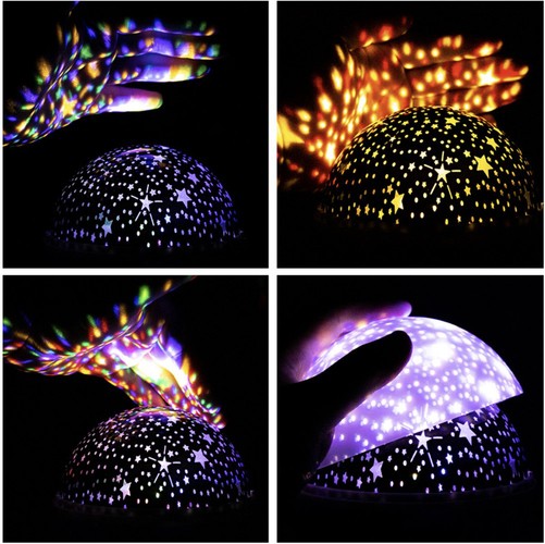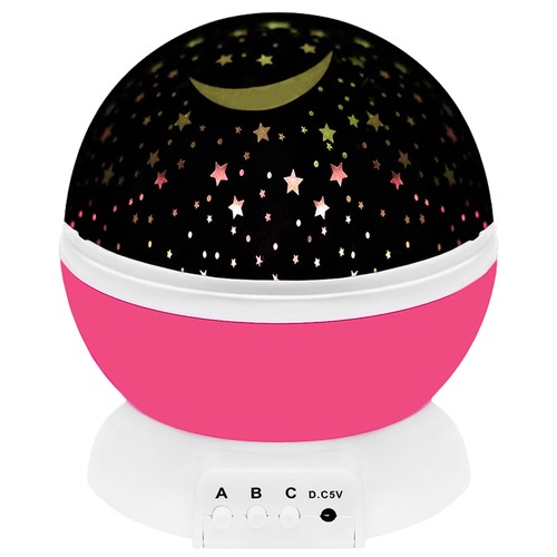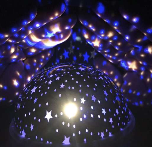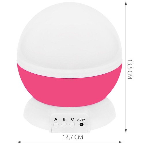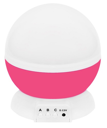 Dziecięca lampka nocna z projektorem to praktyczny gadżet i zarazem wspaniały pomysł na umilenie wieczoru czy spokojny sen. Niewątpliwie przyda się wszystkim dzieciom, które są zainteresowane gwiezdną tematyką, a także tym, które boją się ciemności. Lampka jest w kształcie kuli przymocowanej na stałe do podstawki, na której znajdują się 3 przyciski funkcyjne (A,B,C) oraz miejsce na kabel zasilający USB. Lampka spełnia podwójną funkcję. W zależności od tego czy zostawimy, czy zdejmiemy górną, mleczną pokrywkę, produkt może służyć jako nocne, spokojne, oświetlenie lub jako projektor księżyca i gwiazd w różnych opcjach i wariantach kolorystycznych. Podczas korzystania z funkcji lampy, ciała niebieskie są wyraźnie widoczne na przykrywce. Nie są rozproszone i „rozmyte”, jak w przypadku pracy projektora.