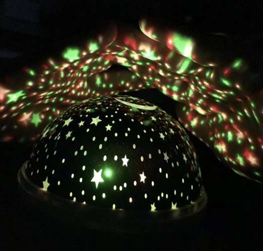 - PROJEKTOR ŚCIENNY – po zdjęciu przykrywki lampka zmienia się w projektor i ciała niebieskie wyświetlane są na ścianie w różnych wariantach. Ale to nie wszystko, najważniejsze że projektor ma krótki zasięg, żeby nie razić dziecka po oczkach!