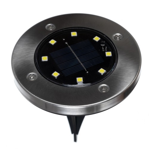 - SPECYFIKACJA materiał: PP, stal nierdzewna, PS, silikon; barwa światła: biała zimna; wodoodporność: IP 65; panel solarny: 2V 100ma; źródło światła: LED; ilość LED na jednej lampce: 8; czas pracy: 10 h; długość ładowania: 6-8h; długość szpikulca do wbicia: 11,5cm; wymiary: 11,5 x 12,5 cm; waga zestawu: 0,466 kg; waga w opakowaniu: 0,703 kg