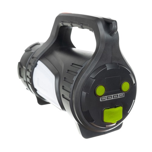 Dzięki swojej budowie i funkcjom jest niezastąpiona. Wytrzymała, wodoodporna i pyłoszczelna outdoroowa latarka z wygodnym sterowaniem o mocnym strumieniu światła 1200 lm oświetli każde miejsce. Białe i czerwone oświetlenie boczne sprawią, że możesz je wykorzystać np. w trudnych sytuacjach, kiedy potrzebujesz pomocy. Mocny akumulator wystarczy na 6-8 h ciągłej pracy, czyli jeżeli tego potrzebujesz nawet na całą noc. Widoczny wskaźnik naładowania akumulatora na tylnym panelu pozwoli szybko oszacować w jakim stopniu bateria jest naładowana. Funkcja powerbanku sprawi, że zawsze możesz naładować np. telefon. Dodatkowo latarka posiada wygodny uchwyt do przenoszenia i pasek na ramię w zestawie.