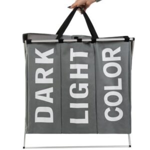 3 KOMOROWY KOSZ NA PRANIE DARK LIGHT COLOR AŻ 3 KOMORY – dzięki takiemu nowoczesnemu rozwiązaniu, możesz segregować pranie już na wstępnym etapie, ale to nie wszystko segregacją mogą również zająć się inni domownicy, wystarczy odpowiednio ich poinstruować. WODOODPORNY – wewnątrz kosz pokryty jest wodoodpornym materiałem, który sprawia, że możemy w nim przechowywać wilgotne ubranka, bez ryzyka ubrudzenia zewnętrznej strony…