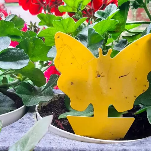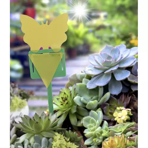 - PROSTE W UŻYCIU – żółty kolor przyciąga owady żerujące na roślinach. Wystarczy włożyć do ziemi, a zwabione owady przyklejają się do pułapki i w ten sposób zostają unieruchomione, co uniemożliwia ich dalsze rozmnażanie, a także pozwala zaobserwować moment ich pojawienia się oraz liczebność.