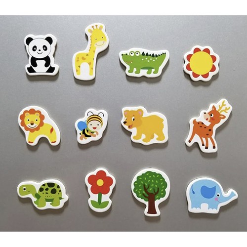 - ZESTAW 12 MAGNESÓW – ten rewelacyjny zestaw 12 magnesów doskonale sprawdzi się zarówno jako ozdoba lodówki jak i zabawka dla najmłodszych. Znajdują się w nim zwierzątka oraz drzewko i kwiatek.