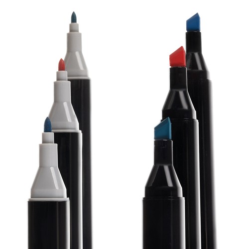 - DWUSTRONNE – pisaki są wyposażone w dwie końcówki – cienką do precyzyjnych linii i detali oraz szeroką do wypełniania dużych powierzchni. Taka konstrukcja pozwala na elastyczność w zastosowaniach, od delikatnych szkiców po pełne, intensywne kolorowanie. Dla jeszcze efektywniejszej pracy artystycznej do zestawu dołaczamy czarny cienkopis oraz biały długopis, który świetnie sprawdzi się do rozjaśniania.