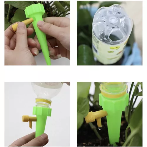- ŁATWY MONTAŻ + KRANIK – wystarczy zakręcić nawadnicz na butelkę z wodą (dobrze, aby w butelce była dziurka), włożyć do ziemi z rośliną i odkręcić kranik, a następnie regulować pokrętłem przepływ wody, który dostarcza wodę do rośliny.