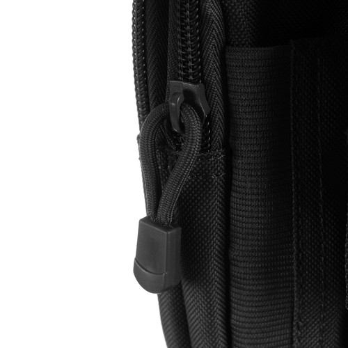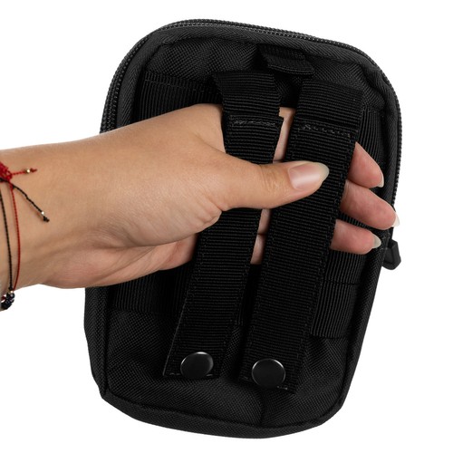 - SYSTEM MOLLE ELASTYCZNE DOPASOWANIE – nerka została zaprojektowana z myślą o systemie MOLLE (Modular Lightweight Load-carrying Equipment), który pozwala na elastyczne przypięcie saszetki do różnych elementów wyposażenia taktycznego, takich jak plecaki, pasy czy kamizelki. Z tyłu nerki umieszczono dwa usztywniane paski zapinane na mocne metalowe napy, które dodatkowo zabezpieczają ją przed przesuwaniem się podczas użytkowania. Na tyle nerki znajdują się dwa rzędy pasków poziomych z trzema sekcjami na każdy z pasków, co umożliwia dopasowanie jej do szerokości paska lub innego sprzętu. To innowacyjne rozwiązanie zwiększa funkcjonalność saszetki, sprawiając, że jest ona idealna do dynamicznych sytuacji.