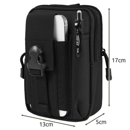 - SPECYFIKACJA – kolor: czarny; materiał: tkanina oxford 600D, nylon, PP, TPE, poliester, stop cynku; mocowanie do paska: zatrzaski; liczba komór: 2; liczba kieszeni: 4; kieszonka na telefon: TAK; kieszonka na długopis: TAK; wymiary: 13 x 5 x 17 cm; długość paska: 117 cm; waga zestawu: 0,33 kg waga zestawu w opakowaniu: 0,35 kg.
