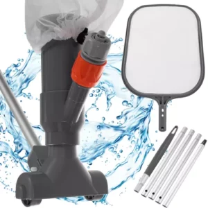 ZESTAW 2 w 1 DO CZYSZCZENIA BASENU / ODKURZACZ + SIATKA 2 w 1 – jeden zestaw, ale dwie praktyczne funkcje. W zestawie jest siatka do wyławiania większych zanieczyszczeń z powierzchni wody basenowej oraz odkurzacz do dna basenu z napędem wodnym. BARDZO ŁATWY W OBSŁUDZE – wystarczy podłączyć wąż z wodą do szybkozłączki i odkręcić wodę. Urządzenie pod wpływem ciśnienia…
