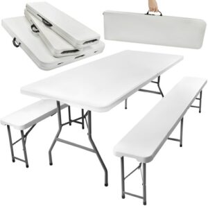 STÓŁ OGRODOWY SKŁADANY 180CM + 2 ŁAWKI ?? STÓŁ Z ŁAWKAMI – składany zestaw mebli ogrodowych to idealne rozwiązanie na wszystkie plenerowe imprezy oraz wydarzenia. Jest niezwykle praktyczny i wygodny. Posiada mocną konstrukcję oraz gruby blat – wszystko to odporne na niesprzyjające warunki atmosferyczne. Wystarczy kilka prostych ruchów, aby stworzyć na swoim ogródku idealny kącik gastronomiczny, który sprawdzi się na festynach, dużych…