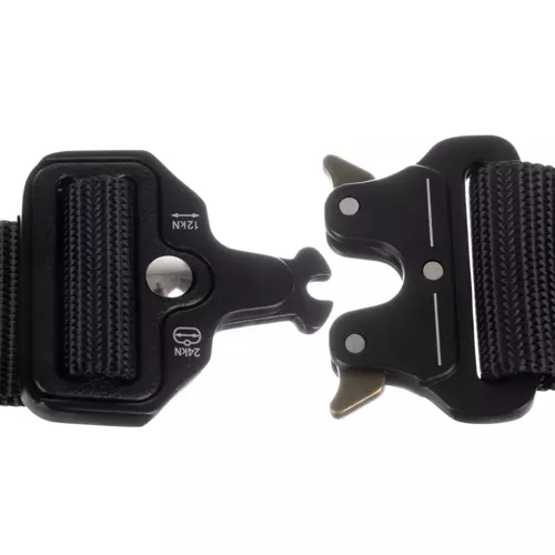 - SPECYFIKACJA – kolor: czarny; materiał: nylon, pozostałe: stop cynku + poliester + aluminium; udźwig pasa otwartego: 12kN; udźwig pasa zamkniętego: 24kN; szerokość klamry: 5 cm; szerokość materiału pasa: 3,8 cm; obwód pasa maksymalnie: 115 cm; długość pasa: 119 cm; długość całkowita: 125 cm; waga: 208g; waga w opakowaniu: 232g.