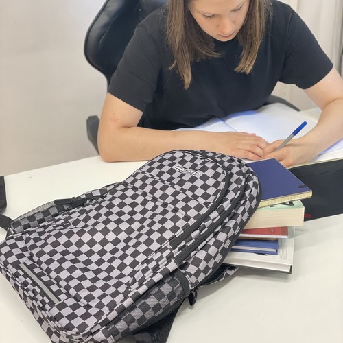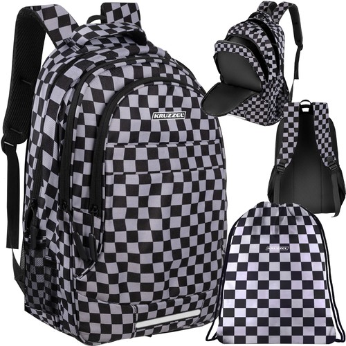 - PRZEMYŚLANA ORGANIZACJA WNĘTRZA + ODBLASKOWE ELEMENTY – plecak posiada pojemną główną komorę, zapinaną na zamek z dwoma suwakami, co umożliwia wygodne otwieranie i zamykanie. W środku znajduje się usztywniana duża kieszonka, idealna do przenoszenia laptopa, nootebooka czy tabletu, zapewniająca im odpowiednią ochronę przed uszkodzeniami. Poza laptopem można pomieścić tu książki i zeszyty. 2 komora przeznaczona jest do pląskich i dużych akceoriów tj. bloku rysunkowego czy prac plastycznych Z przodu plecaka znajduje się też kieszeń, która doskonale nadaje się do zapakowania śniadania lub przechowywania drobiazgów, takich jak klucze, telefon czy portfel. Pod kieszenią umieszczony jest odblaskowy pasek, który zapewni użytkownikowi widoczność i bezpieczeństwo po zmierzchu. Designerski wzór w kratkę nadaje plecakowi unikalnego charakteru. Jest zarówno funkcjonalny, jak i stylowy, świetnie odzwierciedli osobowość i styl użytkownika.