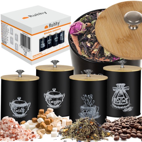 - nowoczesny design elegancki, czarny wygląd pojemników z bambusowymi pokrywkami doskonale pasuje do nowoczesnych kuchni
