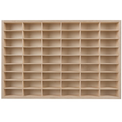 - SPECYFIKACJA – kolor: sosna; materiał: drewniana sklejka; ilość przegródek: 54; wielkość przegródki: 4 x 9,4 x 5 cm; wymiary: 60 x 40 x 5,3 cm; waga: 2,276 kg; waga w opakowaniu: 2,507 kg.