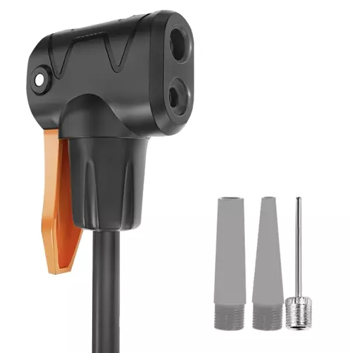 • KOMPATYBILNA + 3 KOŃCÓWKI – pompka jest kompatybilna z różnymi wentylami. Posiada podwójną uniwersalną głowicę do wentyli samochodowych i rowerowych. Dodatkowo jest wyposażona w igłę do piłek oraz końcówkę do pompowania materacy czy kółek do pływania.