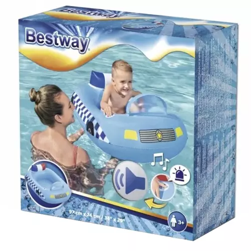 - REALISTYCZNY WYGLĄD + DŹWIĘK- włącz alarm, nasza łódka policyjna robi ogromne wrażenie tego lata! Ta ekscytująca, nowatorska łódź ma kształt samochodu policyjnego z realistycznymi dźwiękami syreny po naciśnięciu przycisku. Dzięki łatwej konfiguracji, naszej wyjątkowej wbudowanej technologii i długotrwałej mocy baterii Twoje dzieci będą cieszyć się zabawnym nadmuchiwanym produktem latem po lecie