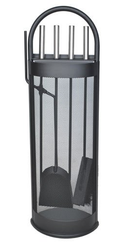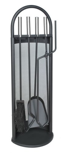 5-elementowy zestaw przyborów kominkowych o nowoczesnym designie. Wytrzymały, wykonany ze stali oraz łatwy w obsłudze. Zestaw łatwo utrzymać w czystości dzięki stojakowi wyposażonemu w podstawkę, która zatrzyma brud i popiół z narzędzi, pozostawiając Twój dom czystym. Osłona zabezpiecza akcesoria przed iskrami z kominka.