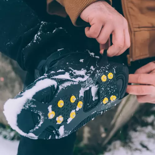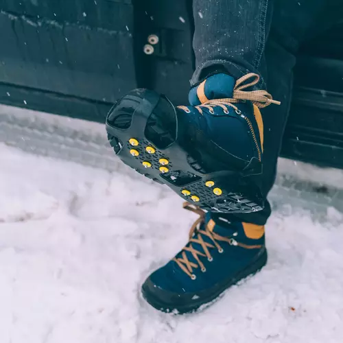 Elastyczne gumowe nakładki na buty z kolcami antypoślizgowymi to nieodzowny element wycieczki nie tylko w góry. Każda nakładka zawiera 10 zębów przymocowanych na plastikowe nity. Zapewnią dobrą przyczepność do gruntu. Idealnie nadają się na jesienną oraz zimową porę roku oraz ddy mamy podmokłe lub zamarznięte podłoże.