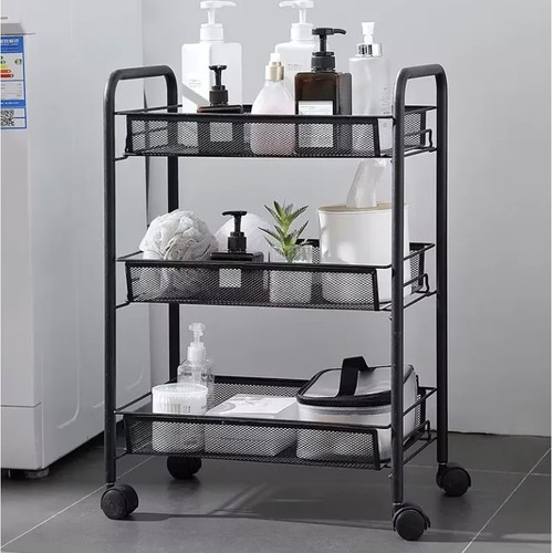 - TRZY POJEMNE PÓŁKI W FORMIE KOSZYKÓW – regał posiada trzy poziomy w formie koszyków, które umożliwiają łatwe przechowywanie i segregację różnych akcesoriów. Maksymalne obciążenie każdej półki to aż 7 kg, co pozwala na przechowywanie cięższych przedmiotów, takich jak garnki, narzędzia, czy kosmetyki. Otwarta konstrukcja półek zapewnia szybki dostęp do przechowywanych rzeczy, ułatwiając organizację przestrzeni. Dzięki temu regał sprawdzi się idealnie jako dodatkowe miejsce na akcesoria kuchenne, łazienkowe czy biurowe.