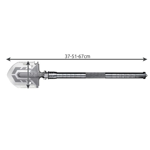 - SPECYFIKACJA – materiał: aluminiowy trzon, pozostałe elementy: stal nierdzewna + 2 pokrowce nylon; kolor: srebrny z dodatkiem odcienia niebieskiego; wymiary: 12,7 x 37 – 67 cm; waga: 0,875 kg; waga w opakowaniu: 0,965 kg.