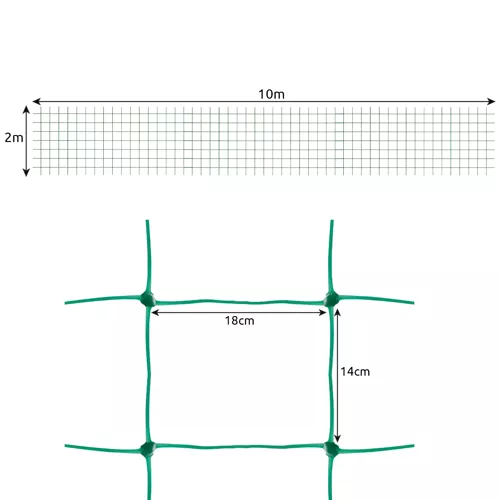 - SPECYFIKACJA – producent: Iso Trade; marka: Gardlov; kolor: zielony; materiał: PP; wymiary oczka: 14 x 18 cm; wymiary całkowite: 2 x 10 m; waga: 0,173 kg; waga w opakowaniu: 0,186 kg.