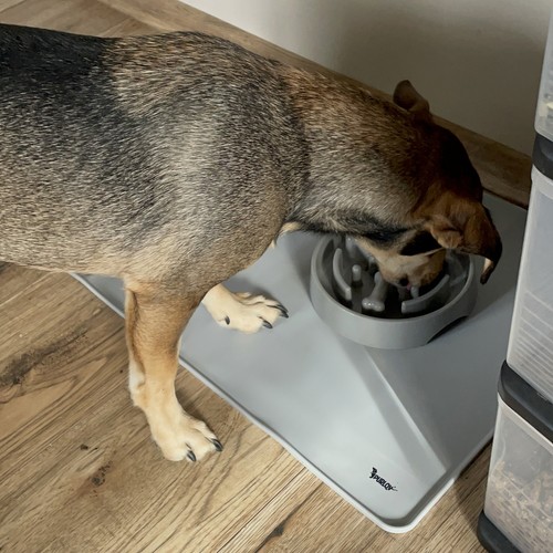 ?? antypoślizgowość – podkładka skutecznie zapobiega przesuwaniu się misek, nawet gdy pies je intensywnie, zapewniając stabilność