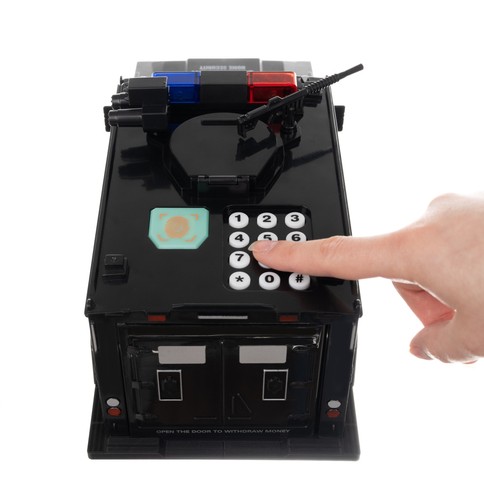 - UCZY OSZCZĘDZANIA – skarbonka policja to bardzo atrakcyjna alternatywa dla tradycyjnej skarbonki. Jej ciekawa forma i wiele ciekawych efektów przyciągają dziecięcą uwagę i zachęcają do odkładania swoich oszczędności, co zaprocentuje w przyszłości. Choć ten sejf na banknoty i monety wygląda jak samochód policyjny, nie wygląda jak zwyczajna zabawka dla najmłodszych, więc doskonale odnajdzie się także w pokoju nastolatka czy jako rodzinne centrum oszczędzania.