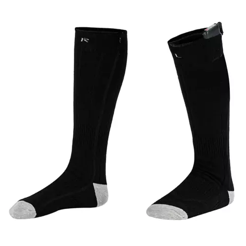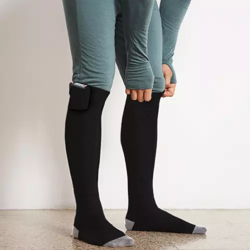 - AKUMULATORKI W ZESTAWIE – do skarpet zostały dołączone dwa akumulatorki. Po podłączeniu chowasz je w specjalne kieszonki u góry skarpet. Ładowanie odbywa się za pomocą kabla USB. Dzięki rozgałęźnikowi kabel jest dostosowany do ładowania dwóch akumulatorów jednocześnie.