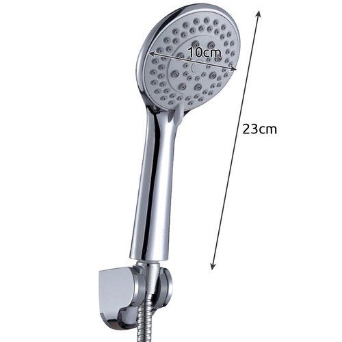 - SPECYFIKACJA – kolor: srebrny; materiał: ABS + PVC + stal nierdzewna + miedź; ilość zmiennych strumieni wodnych: 5; długość węża: 130 cm; wymiary: 23 x 10 cm; waga: 270 g; waga w opakowaniu: 348 g.