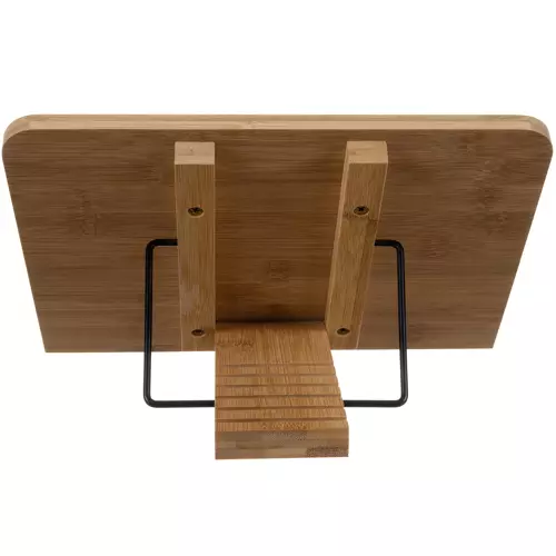 Bambusowa podstawka pod książkę to niezastąpiony gadżet każdego wielbiciela literatury czy ucznia. Regulowany stopień nachylenia, pozwoli na dobranie najwygodniejszej pozycji do czytania. Dzięki temu iż podstawka po złożeniu zajmuje tyle samo miejsca co książka, możemy przechować ją na półce wśród ulubionej literatury. Podstawka jest wykonana z naturalnego bambusa. Jest więc nie tylko stylowa, ale i praktyczna.