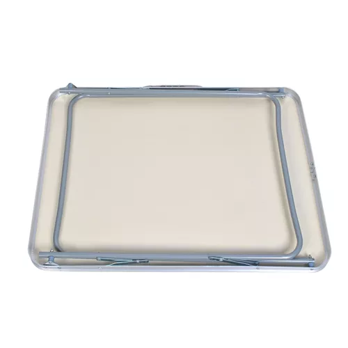 - SPECYFIKACJA – materiał: blat: dominujący materiał: MDF, pozostałe: aluminium + PP, konstrukcja: żelazo; max. obciążenie 20 kg; blokowanie nóg: tak; uchwyt do przenoszenia: tak; składany: tak; grubość rurki 1,5 cm; wymiary 80 x 60 x 70 cm; waga: 3,3 kg; waga w opakowaniu: 4 kg.