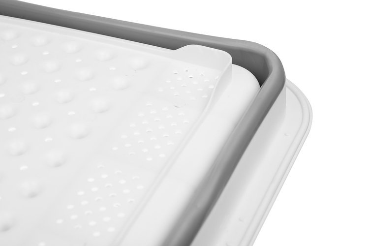 - SPECYFIKACJA – materiał: silikon+PP+TPR; budowa: składana; miejsce na sztućce: tak; wymiary: 36/31/4,5-11 cm; waga: 0,600 kg; waga w opakowaniu: 0,615 kg