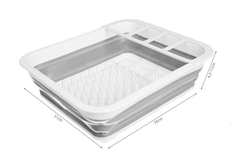 - FUNKCJONALNA – dzięki bardzo praktycznemu rozwiązaniu, jakim jest możliwość składania, ta suszarka do naczyń doskonale sprawdzi się nie tylko w domu, ale również na wyjazdach, np. pod namiot. Dzięki możliwości składania do niewielkich rozmiarów, bez problemu można znaleźć dla niej miejsce w swojej kuchni i schować ją, gdy nie jest potrzebna.