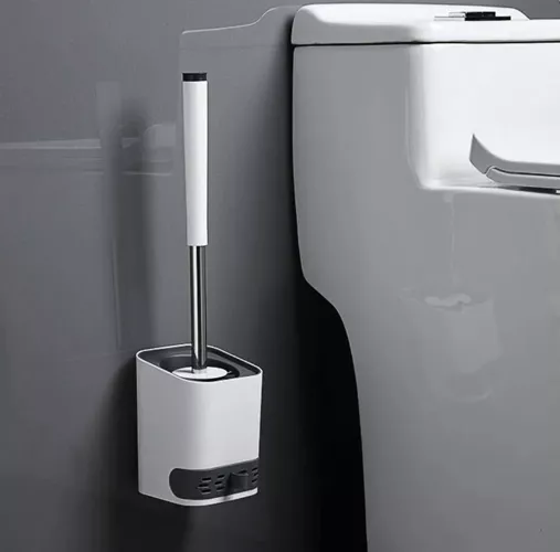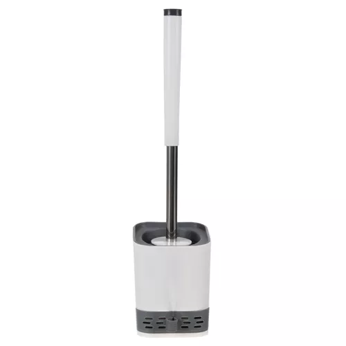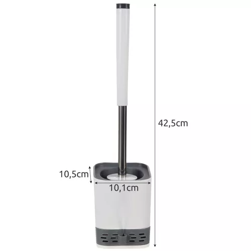Designerska szczotka toaletowa z pojemnikiem w nowoczesnej biało-szarej kolorystyce dokładnie wyczyści Twoją toaletę. Silikonowa główka szczoteczki niezawodnie czyści toaletę, w tym wszystkie zagięcia i zakamarki. Dzięki dłuższej rączce będziesz mógł dotrzeć do jeszcze głębszych i mniej dostępnych miejsc w toalecie.