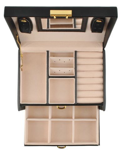 - BEZPIECZNY DLA BIŻUTERII – przegródki zostały wyścielone miękkim materiałem, by chronić delikatne i cenne przedmioty przed zarysowaniem.