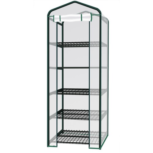 - 5 METALOWYCH PÓŁEK – jest to idealne rozwiązanie dla osób, które dysponują mała ilością miejsca, a chcą zadbać o swoje rośliny w jak najlepszy sposób. Idealnie sprawdzi się w ogrodzie, na tarasie czy balkonie. 5 półek zapewni dużą pojemność szklarni.